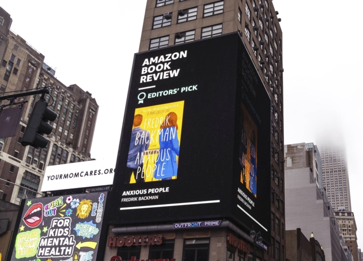 Anxious People by Fredrik Backman is an Editors’ Pick for Amazon’s Best of September feature. The title will be displayed on a 65’ x 83’ corner billboard in NYC, outside Penn Station. The billboard is part of a new initiative highlighting select Editors’ Picks and Amazon chart titles during September. Anxious People will be the only title featured as a single face out.