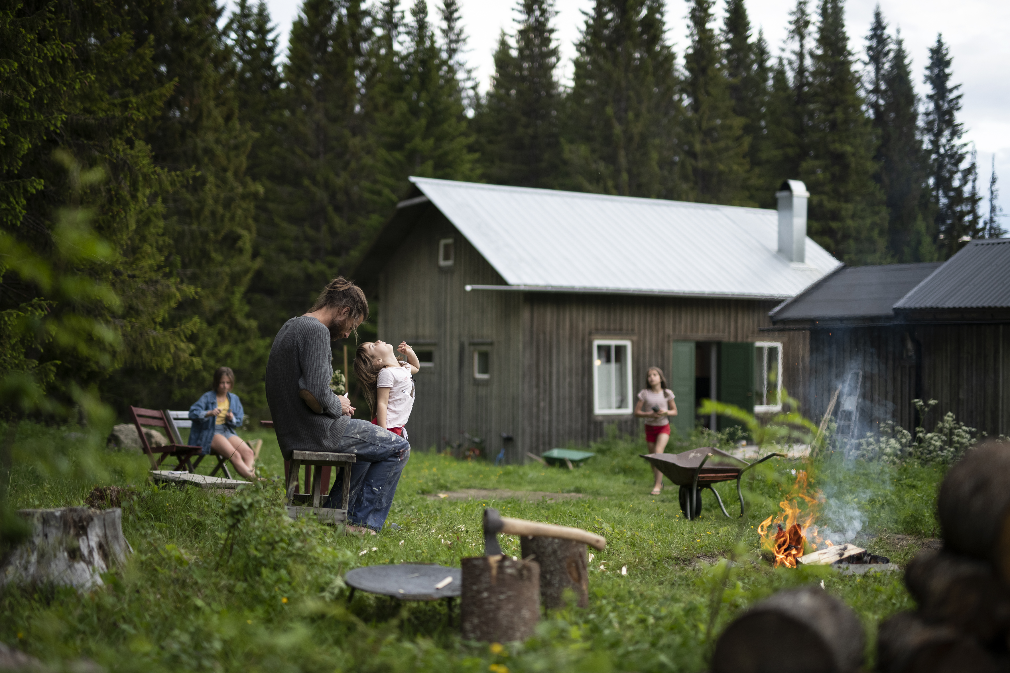 Additionally, the book is a philosophical journey through the spaces that have meant a lot to the author, his wife, and their three daughters: The basement on the island Öckerö where the grandfather repaired fishing nets and the grandmother prepared baked bread, the hut where Markus lived alone in the woods for four years and the house in Jämtland that Markus and Frida built piece by piece.